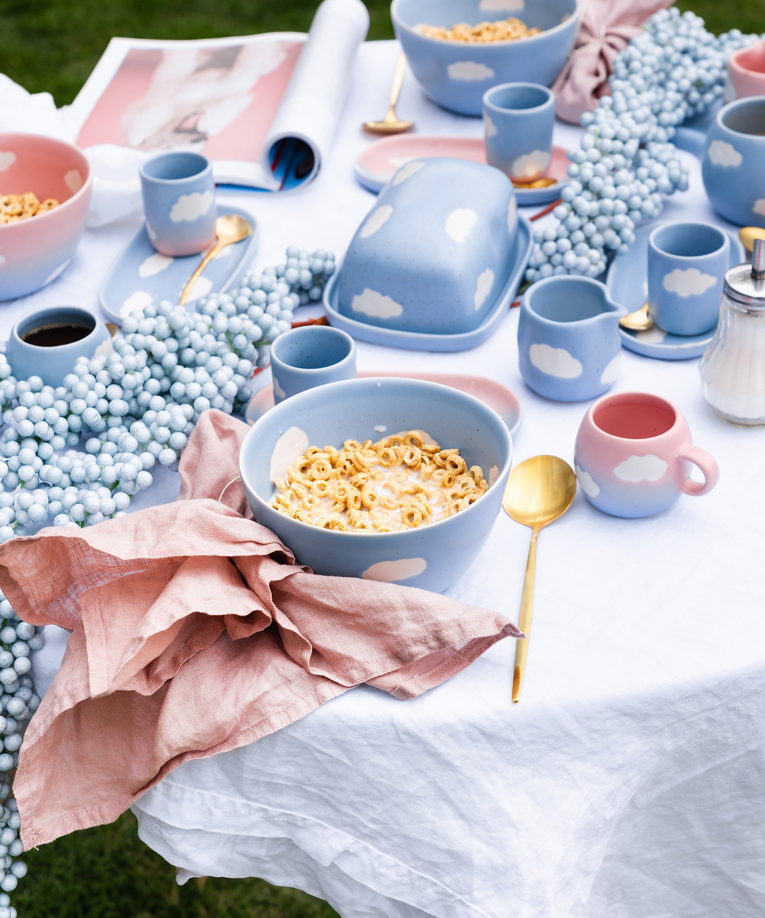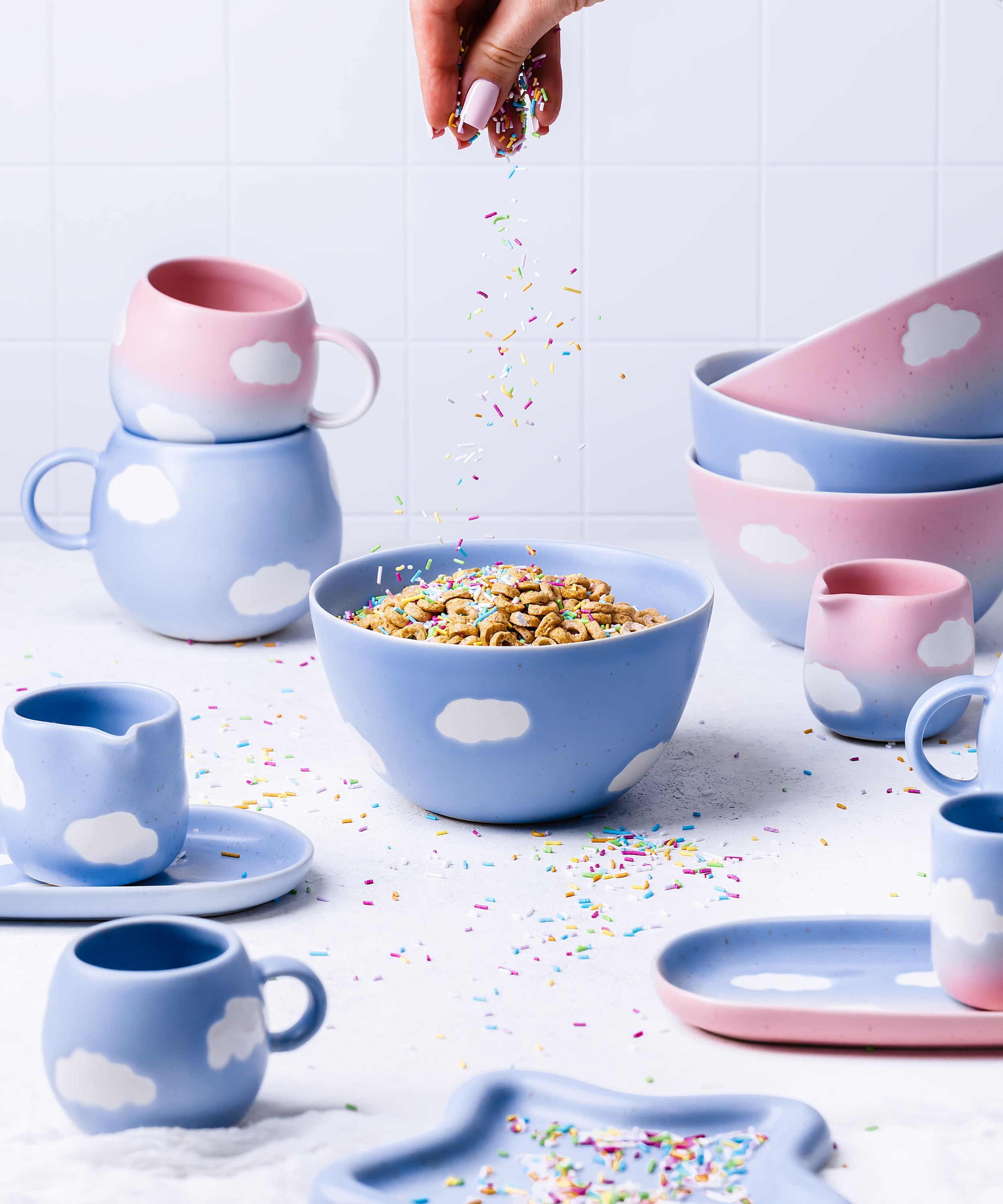 There's something about the Sky and the Clouds that brings me joy and serenity. I've longed for a cloud bowl to "hold the sky in my hands." We carefully chose a Satin Blue finish—neither too shiny nor too matte—while the Clouds carry a subtle shine.
