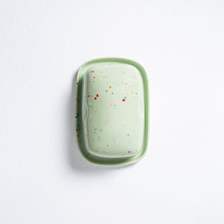 Our Party Collection features a special type of glaze that may exhibit areas where speckles become diffused due to the glass's reactive nature during processing. We find these unique, unpredictable variations to be the most beautiful aspect of the glaze.