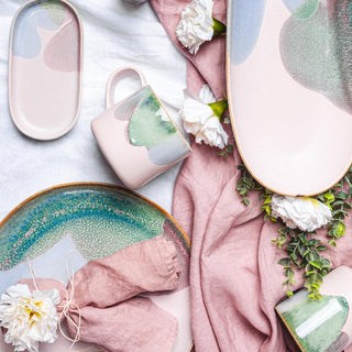 Introducing our latest addition - the Douro River inspired tableware set. This elegant collection was conceived with inspiration from the beautiful landscapes of this wonderful region, featuring a pastel-toned color palette that perfectly captures the hues of the river, grapes, and lush greenery of the area.
