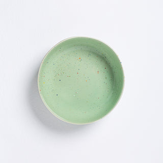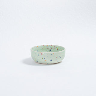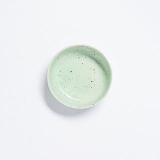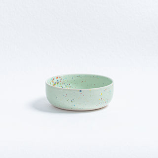 Our Party Collection features a special type of glaze that may exhibit areas where speckles become diffused due to the glass's reactive nature during processing. We find these unique, unpredictable variations to be the most beautiful aspect of the glaze.