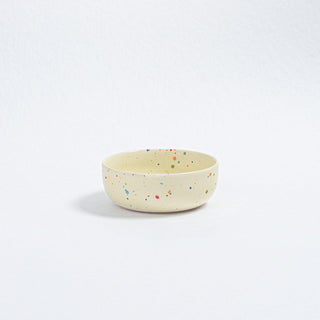 Our Party Collection features a special type of glaze that may exhibit areas where speckles become diffused due to the glass's reactive nature during processing. We find these unique, unpredictable variations to be the most beautiful aspect of the glaze.