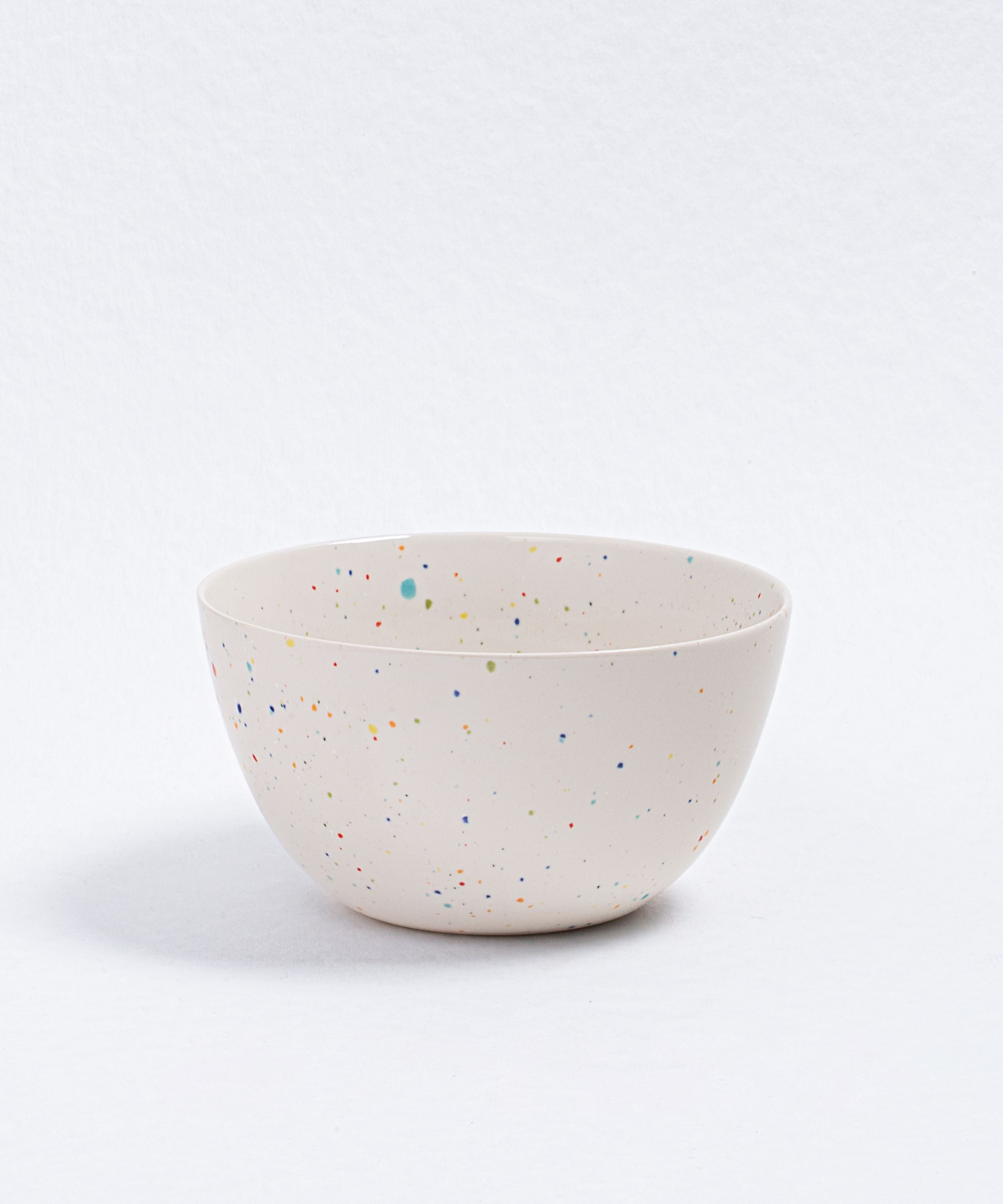 Our Party Collection features a special type of glaze that may exhibit areas where speckles become diffused due to the glass's reactive nature during processing. We find these unique, unpredictable variations to be the most beautiful aspect of the glaze.