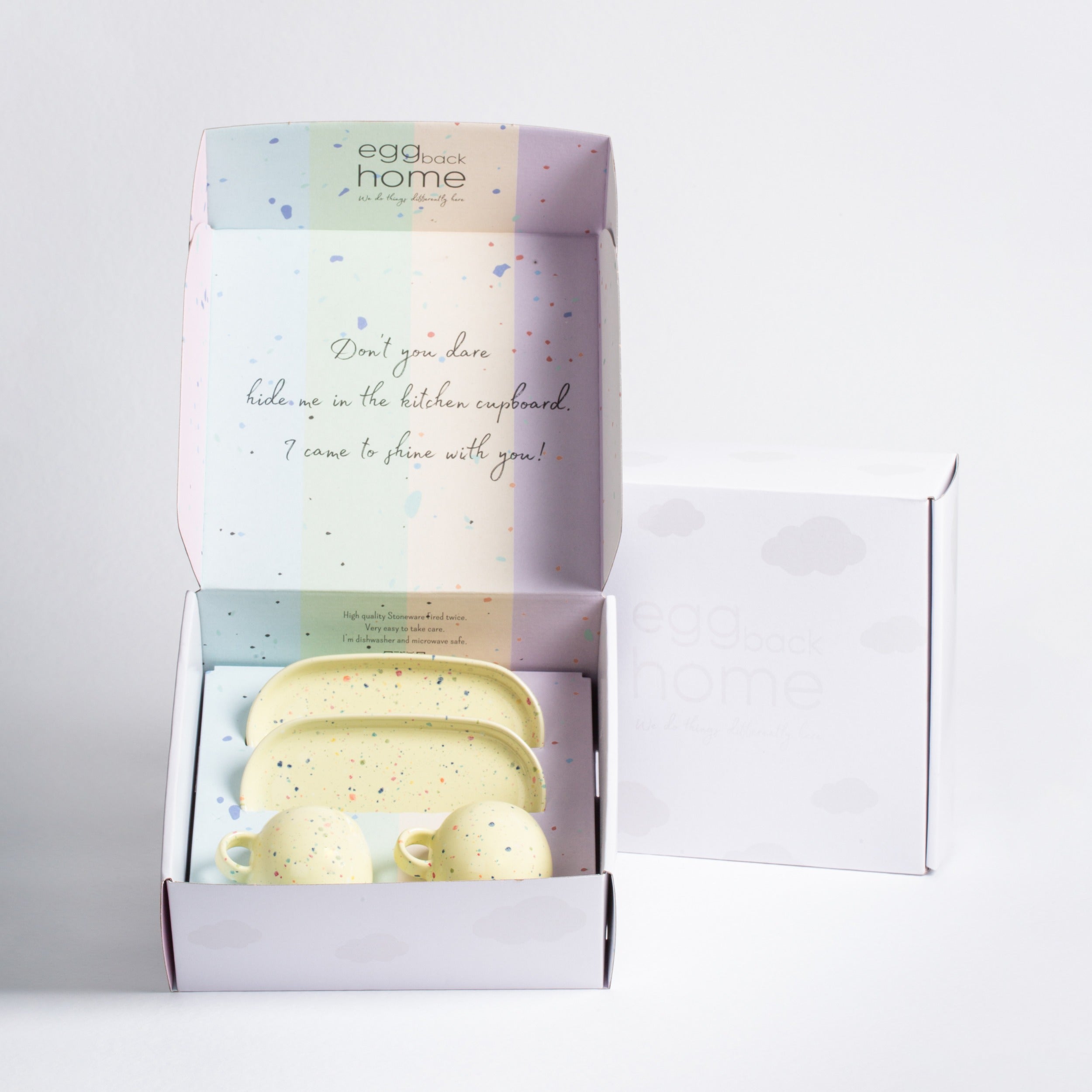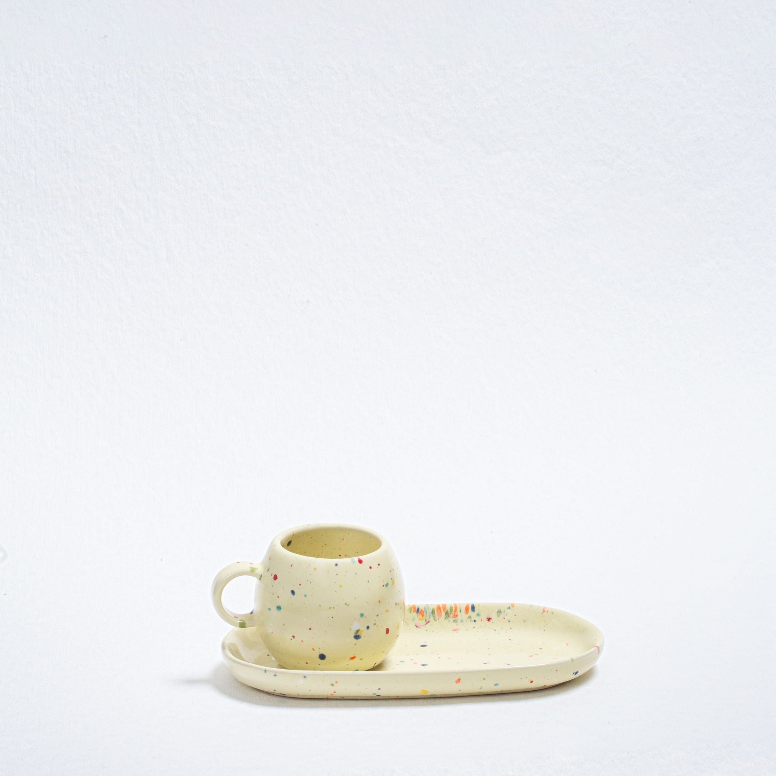 New Party Set 2 Espresso Mug + 2 Mini Tray - Yellow
