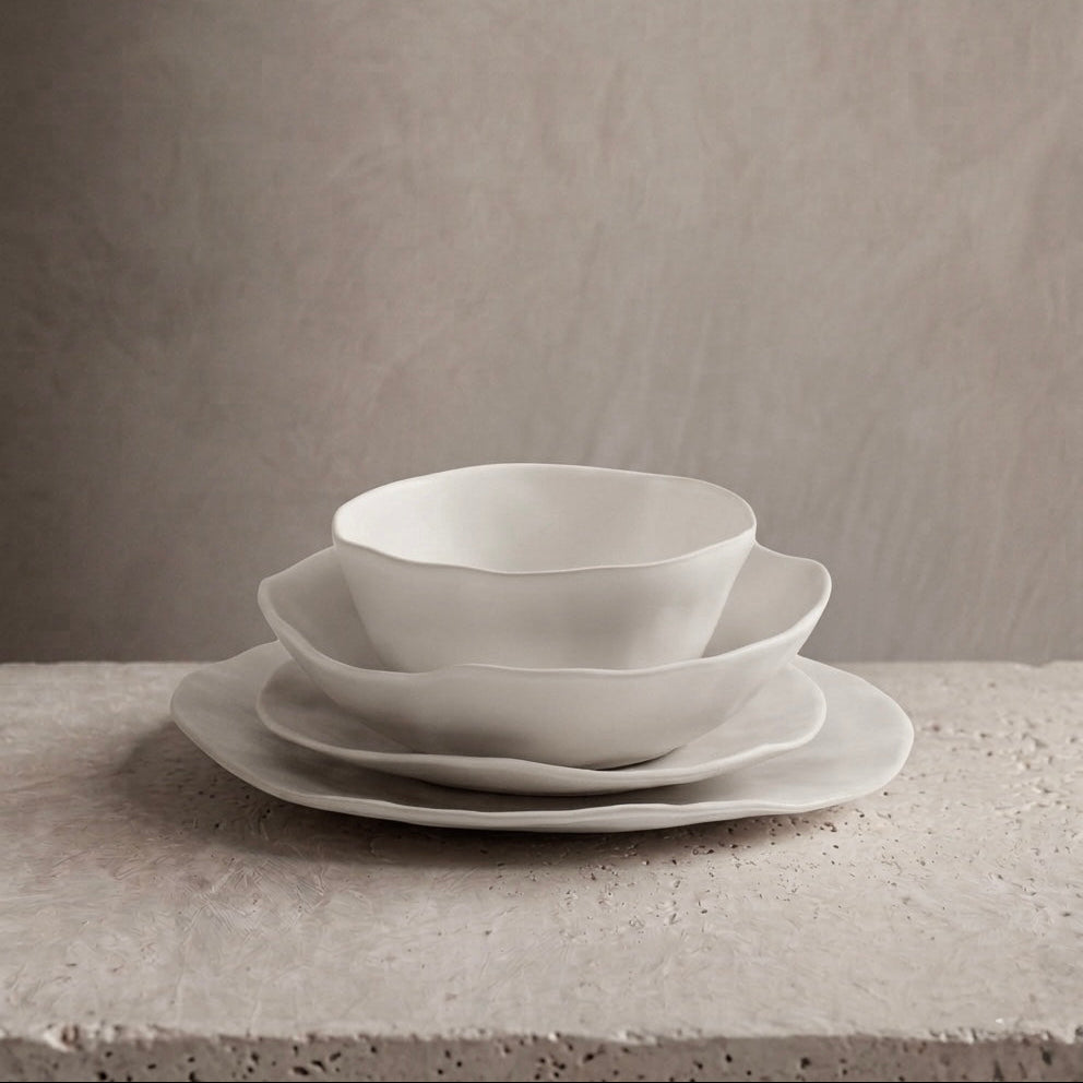 Bring timeless elegance to your table with our Pure Set 16pcs, the refined evolution of the Nature Shape White line.