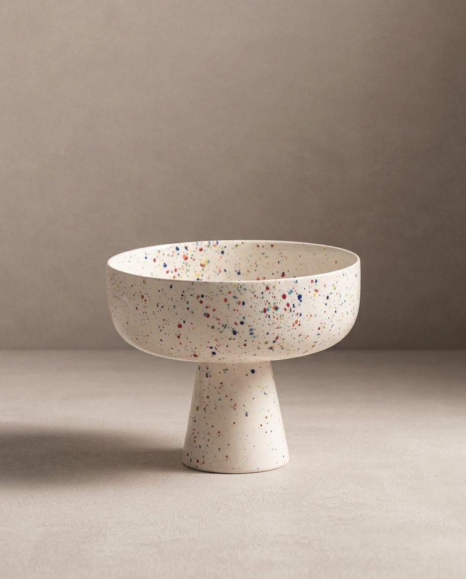 The Fruit Bowl 23cm White is the piece that belongs on the counter all year long. Deep enough for a generous pile of fruit, beautiful enough to deserve its own place in the kitchen. Party White glaze with the reactive character of handmade stoneware. Part of the New Party Collection — designed in Portugal.