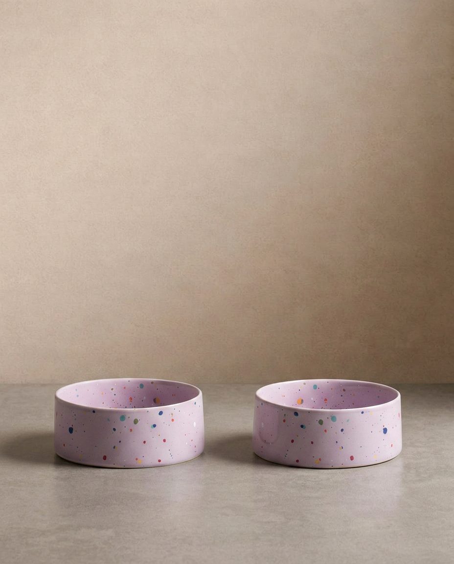 The Pet Bowl 16,5cm Set in Lilac is quiet and considered — two bowls for the pet that lives somewhere beautiful. The Lilac glaze is gentle and warm, the stoneware quality is real. Part of the New Party Collection — designed in Portugal.