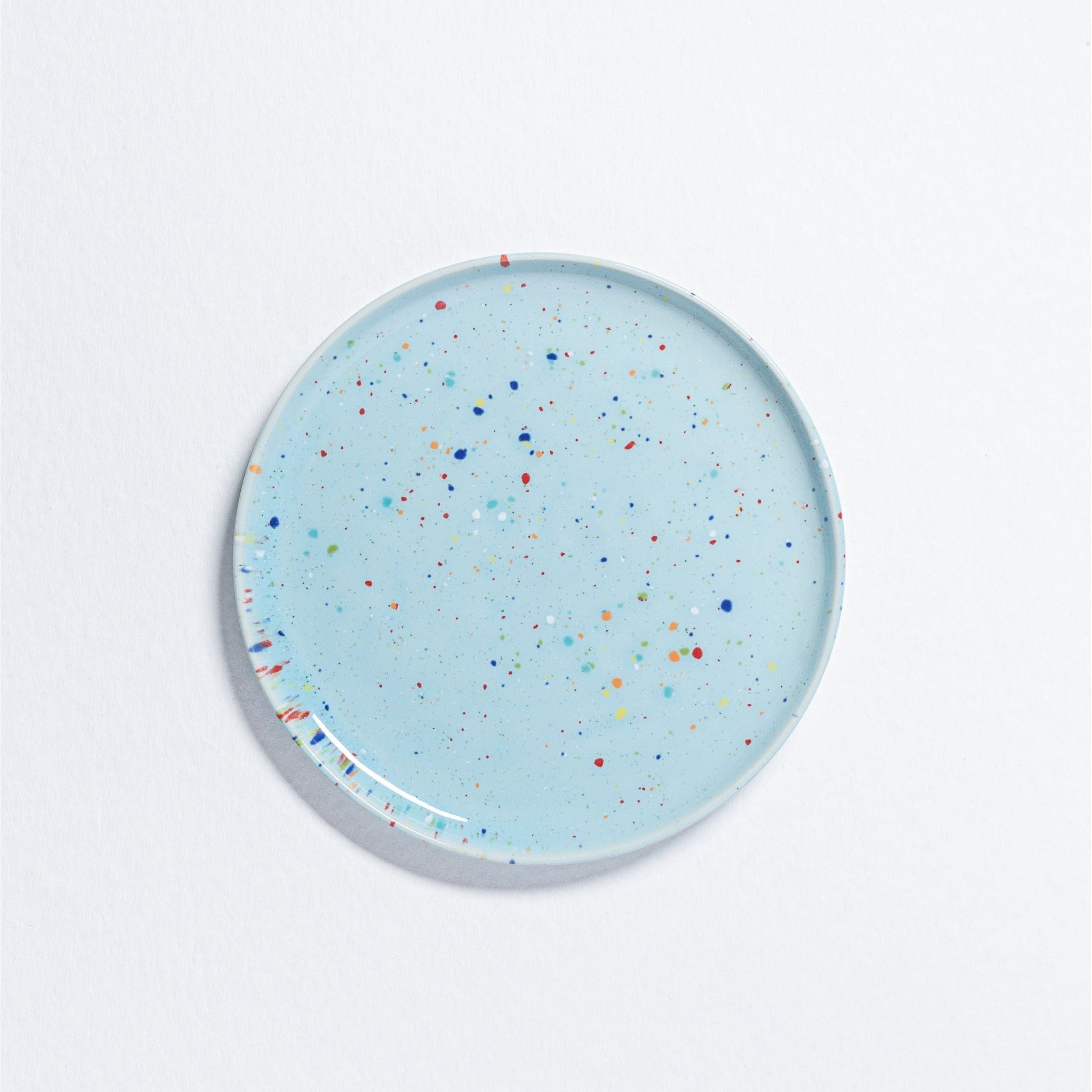 Onze Party Collectie bevat een speciaal type glazuur dat gebieden kan vertonen waar spikkels diffuus worden door de reactieve aard van het glas tijdens de verwerking. Wij vinden deze unieke, onvoorspelbare variaties het mooiste aspect van het glazuur.